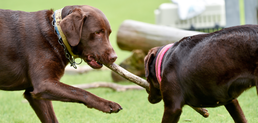 ときに物を噛む・壊す・吠えるのほか、興奮すると引っ張るなどの行動をとることがあるので、小さいときからしっかりとしつけをすることが大切です。物を飲み込む行動をすることもあるので、誤飲には充分注意し、口にして困るものは置かないようにしましょう。毎日の運動のほか、運動不足・ストレスから起こる行動をなくすために、発散させる時間を取ることも必要です。走り回る、ボールをとってくる、引っ張りっこをするなど遊びにトレーニング要素を入れていくのもよいでしょう。ご褒美を大好きな遊びにすることも効果的です。