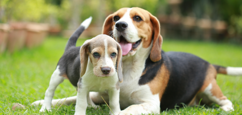 きわめて古い歴史をもち、紀元前からギリシアでウサギ狩りに用いられていたハウンドが祖先だと言われています。すぐれた嗅覚で獲物を追跡し、獲物に対する執着心とスタミナで猟犬として活躍していました。イギリスでは1500年後半に女王エリザベス1世時代に品種改良されたとようです。ビーグルの語源はフランス語の『beigle』からきたもので『小さい』を意味します。