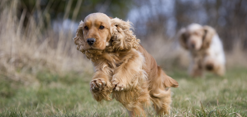 「コッカー」の名は鳥のヤマシギを意味し、当時のイギリスでもっとも小さな猟犬として活躍していました。その後小柄で頭部が丸く、マズルが短く、被毛の美しい愛玩犬として繁殖されました。これが後にアメリカン・コッカー・スパニエルの誕生の背景になったとされています。