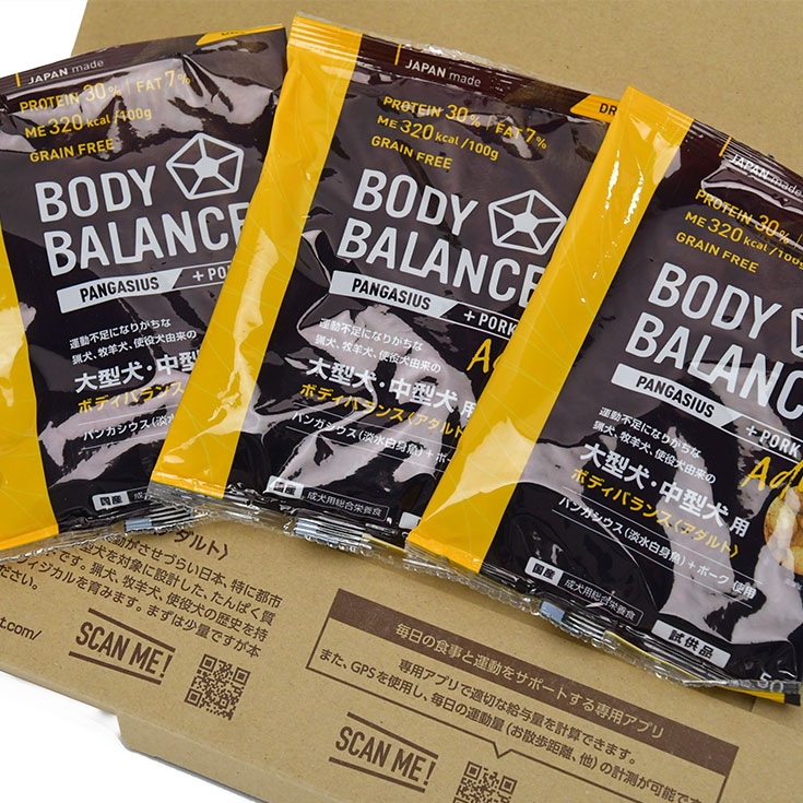 BODY BALANCE は、猟犬由来の愛犬達に必要な、強くしなやかな筋力を保ち、躍動感のある美しさの維持の為に、アミノ酸スコアを指標にたんぱく質の供給源としての原料を厳選。その吸収をサポートする腸内環境や各栄養素に配慮しています。最新栄養基準のAAFCO2016 に準拠した配合設計を採用、ISO9001 取得の工場で製造を依頼しました。