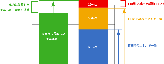 日常生活に必要なエネルギーは毎日の食事から補給します。仮に、消費するエネルギーよりも摂取したエネルギーが少なければ、その分は、体内に備蓄されたエネルギーから利用することになります。これにより増えた体脂肪を減らすのに役立ちます。